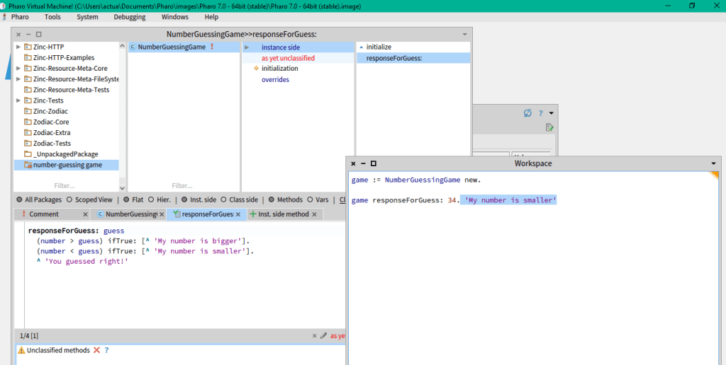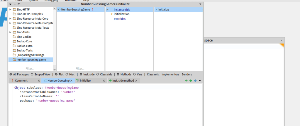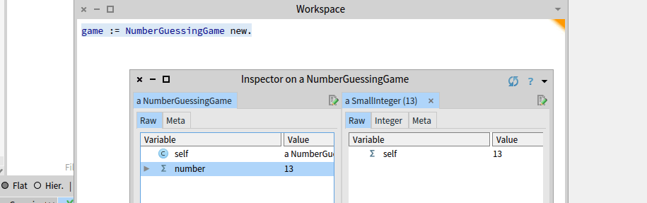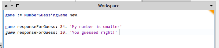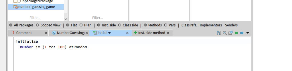 Can run the line game := NumberGuessingGame new. but it doesn’t show, so if you inspect it you should see it, but every time you try it it will initialize it all over again