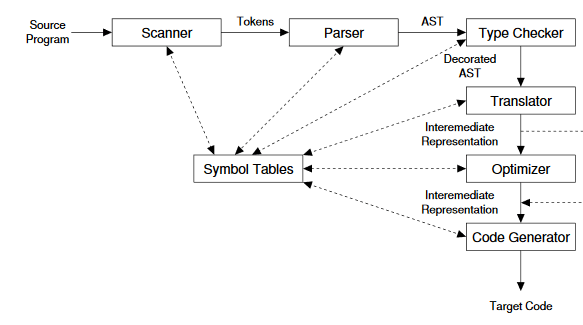 Onthe previous image we can see the compiler processes in which the language code get translated into a language the machine can execute.